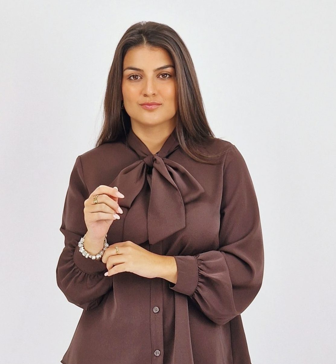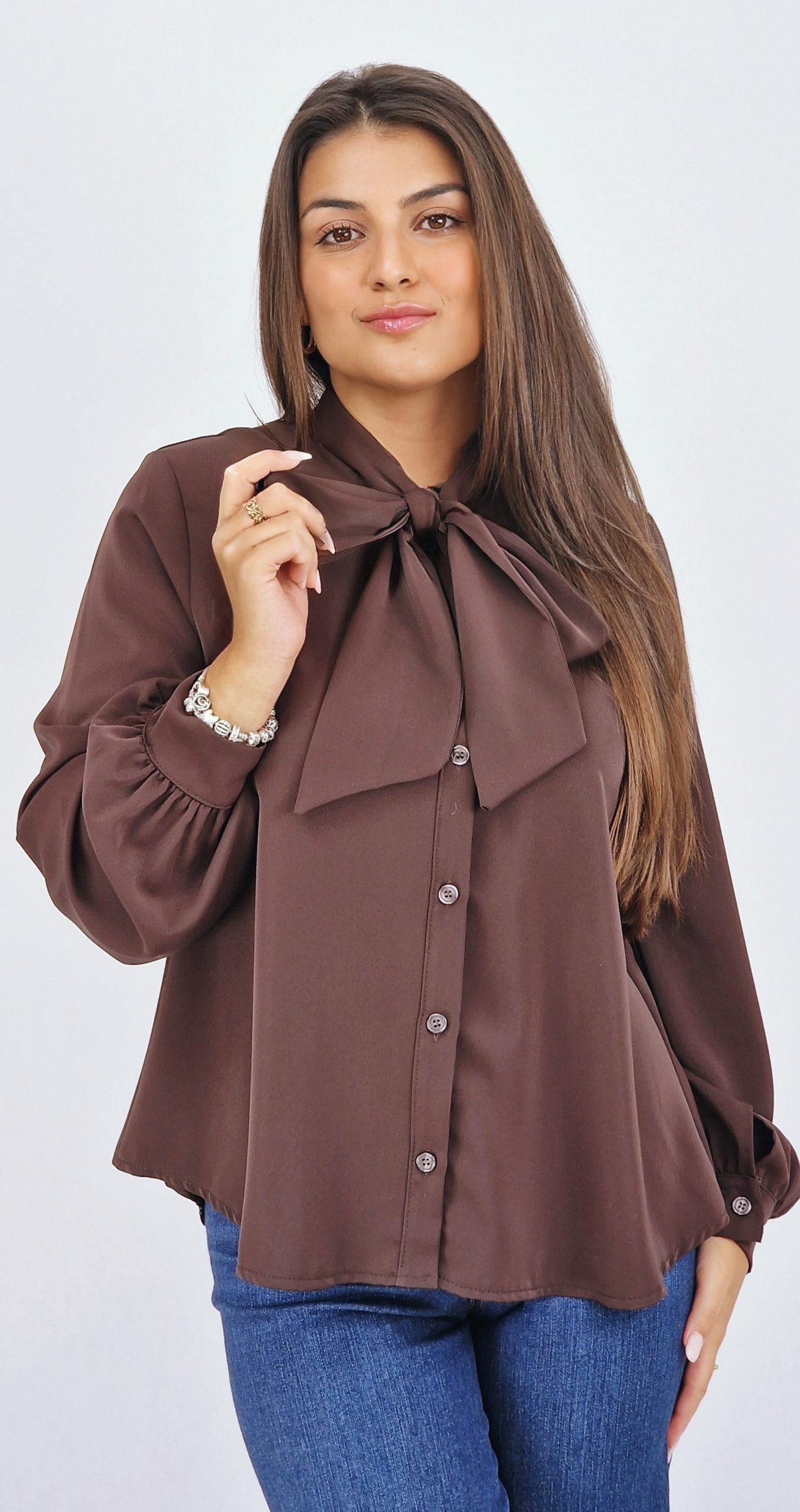 -Blusa confeccionada em tecido leve e fluido, a peça traz um charme clássico com a sua gola laço.