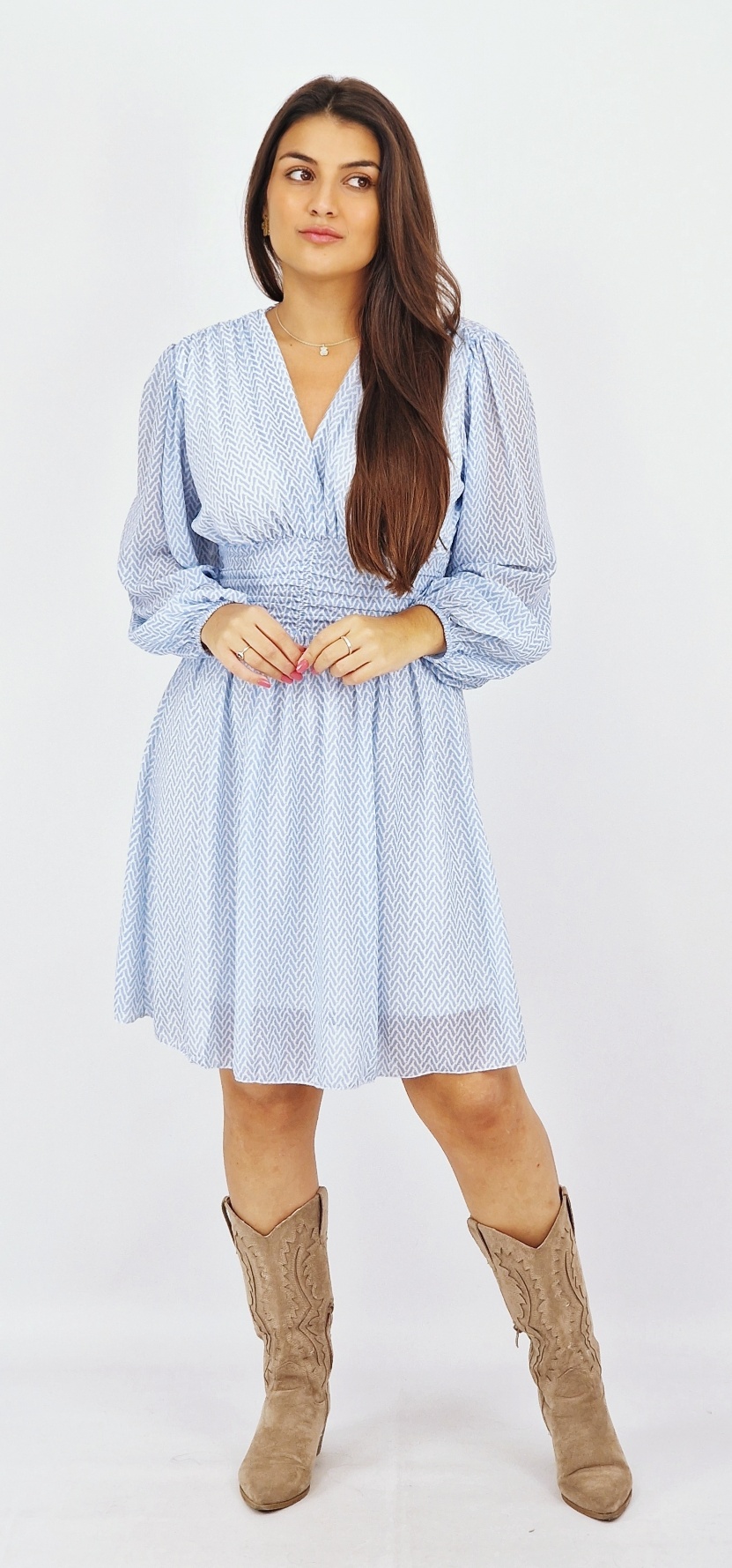 -Cintura marcada com faixa franzida e elástico atrás;